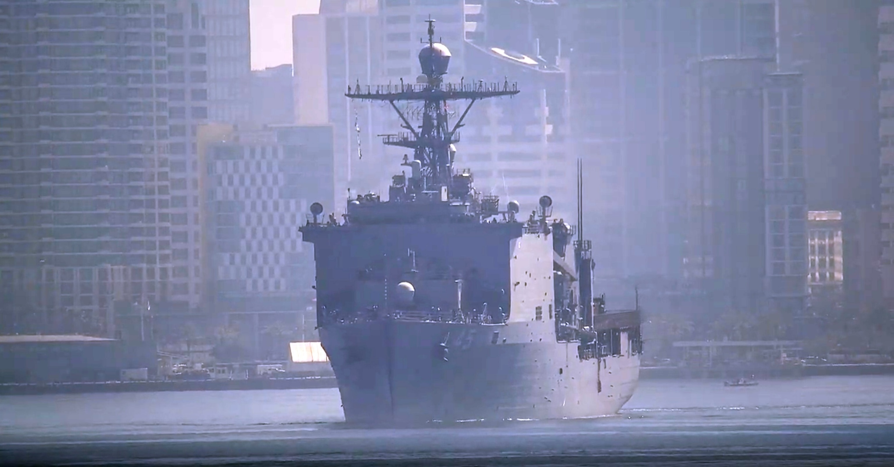 The USS Boxer departs from Naval Base San Diego on March 18, 2026.