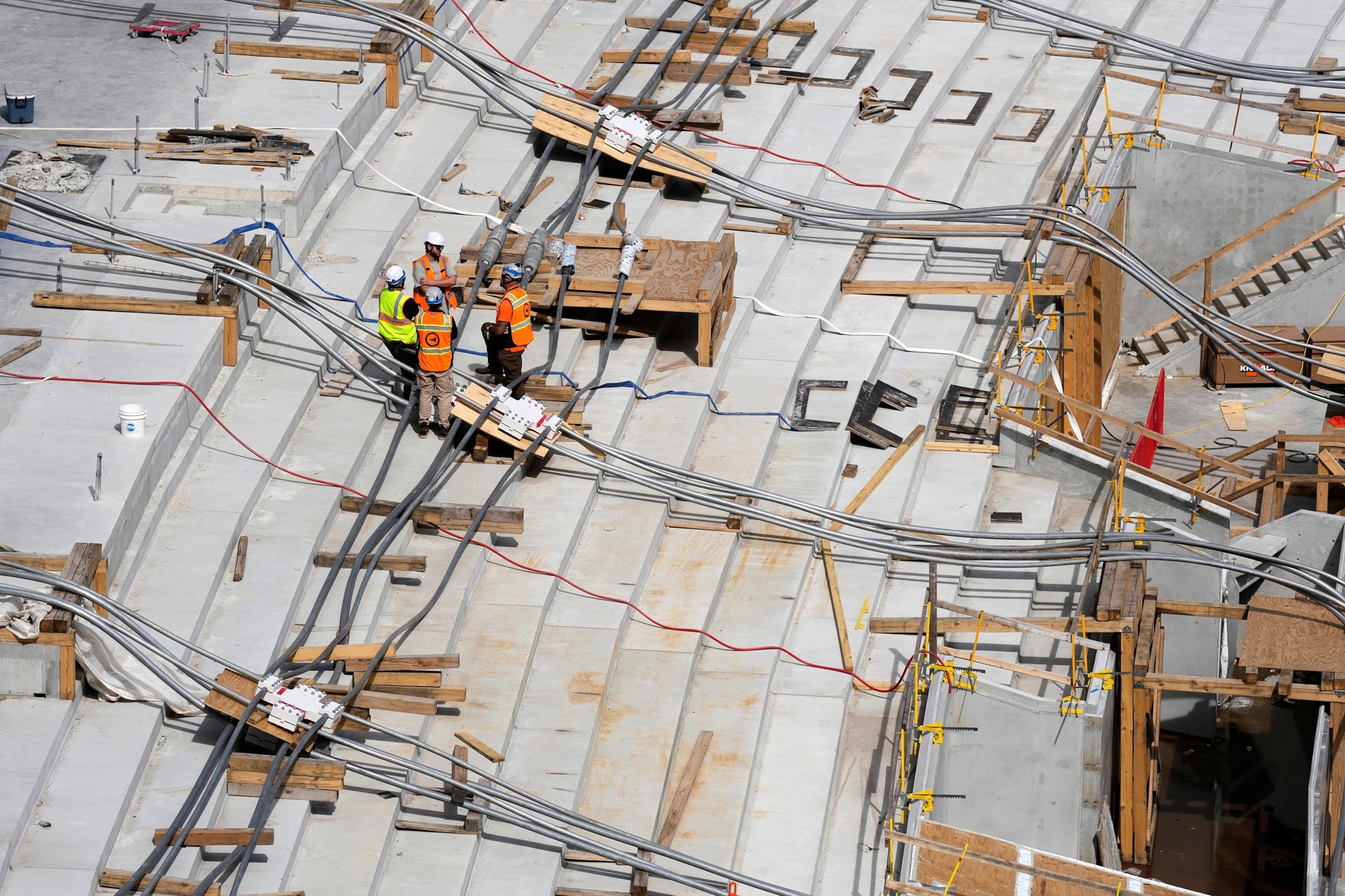 Construction continues on a new enclosed stadium for the Tennessee Titans NFL football team, on March 24, 2026, in Nashville, Tenn.