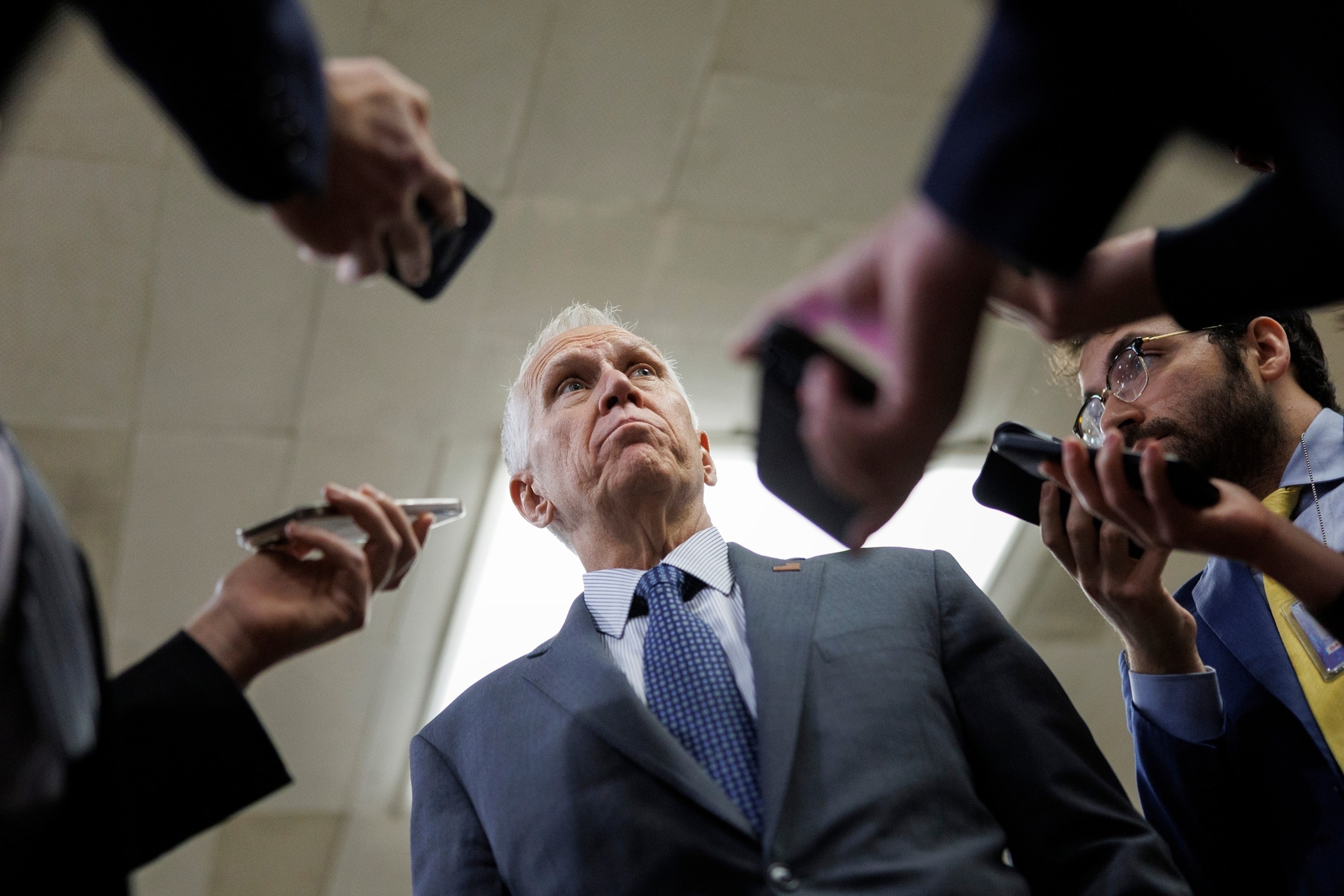 Sen. Thom Tillis speaks to reporters ahead of a vote on Capitol Hill, Feb. 26, 2026.