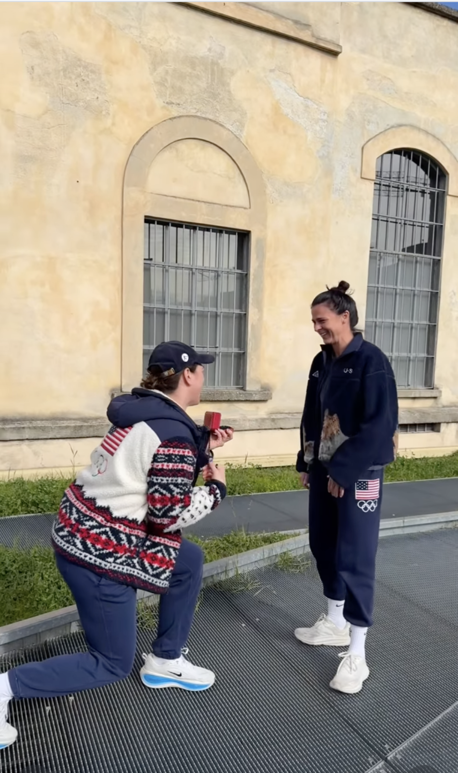 Knight, who is about to play in the women’s hockey gold medal game, got down on one knee to pop the question to Bowe, according to an Instagram video they posted on Wednesday. They were both decked out in their Team USA gear to boot.