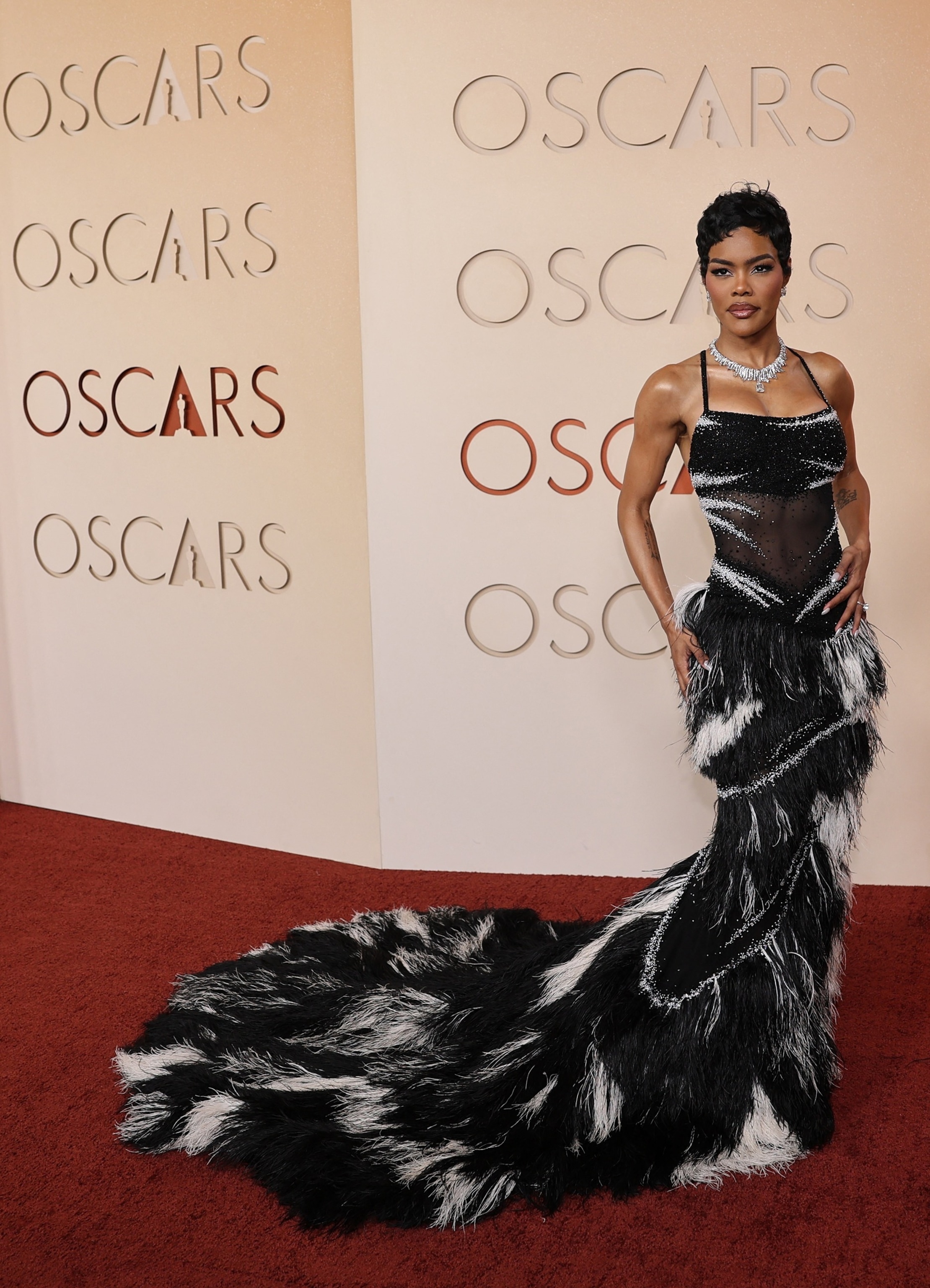 Teyana Taylor poses on the red carpet during the Oscars arrivals at the 98th Academy Awards in Hollywood, March 15, 2026.